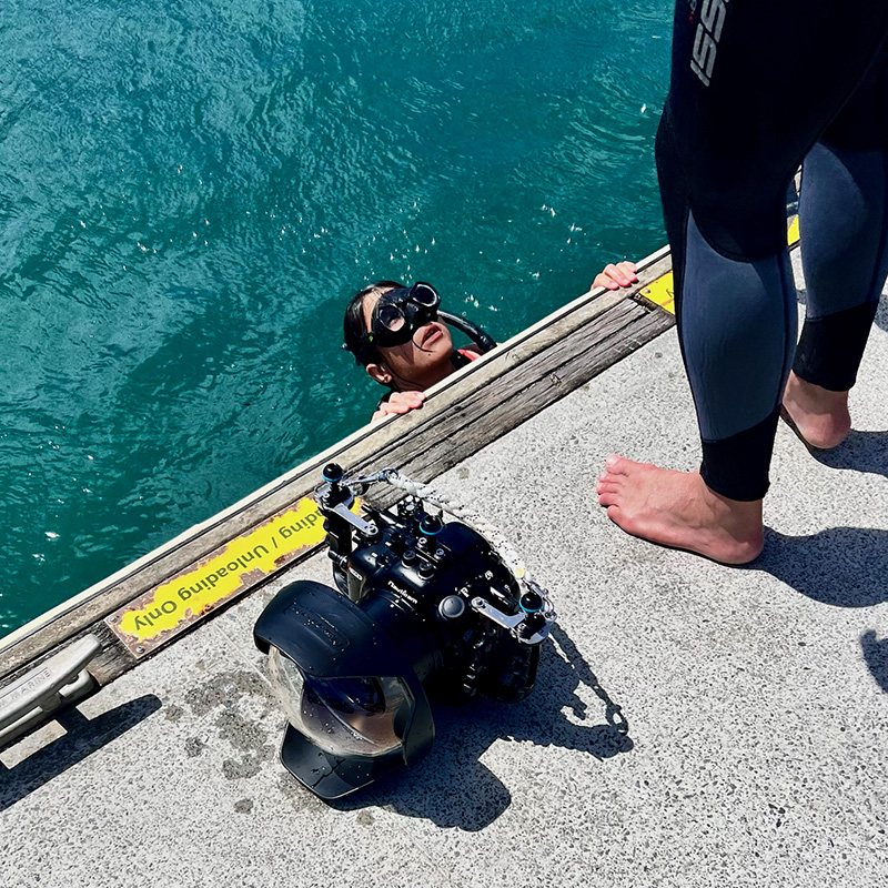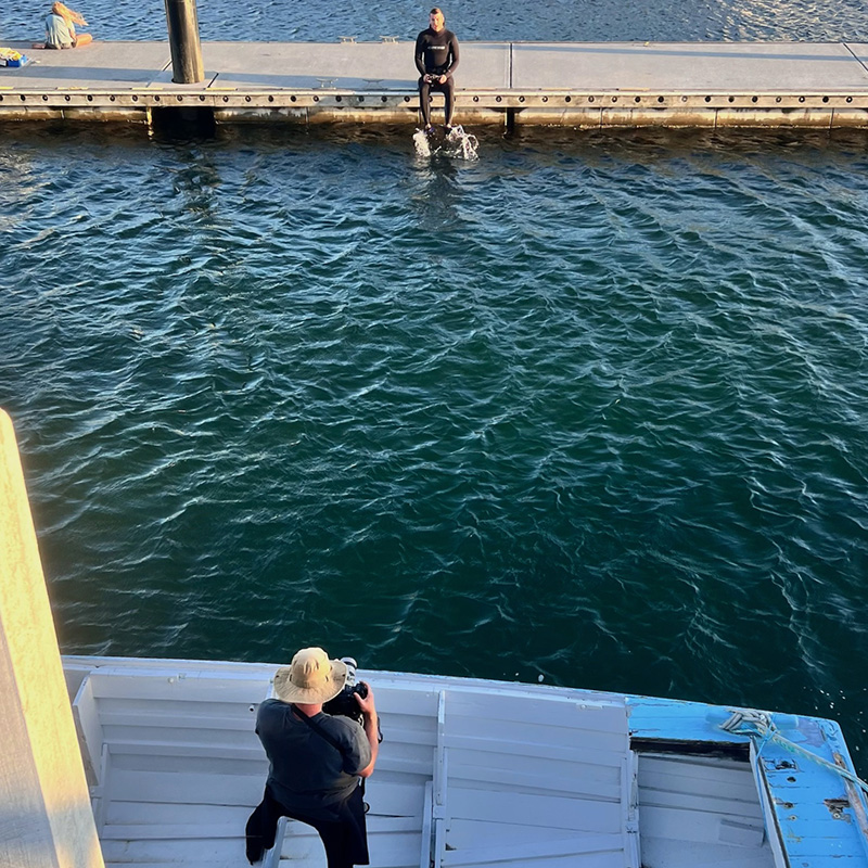 While the sun was high in the sky, Matt and Raquel - Underwater Videographer and Safety Diver - captured the underwater shots while Alec moved around capturing people and life around the jetty.